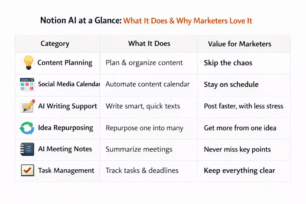 Busy doesn’t always mean productive—and most marketers learn that the hard way. This constant juggling is everyday reality for agencies and marketing teams, where the issue isn’t creativity or effort at all, but broken systems that slow everything down. That’s exactly where Notion AI steps in, bringing much-needed order, clarity, and structure to marketing workflows that feel chaotic otherwise.